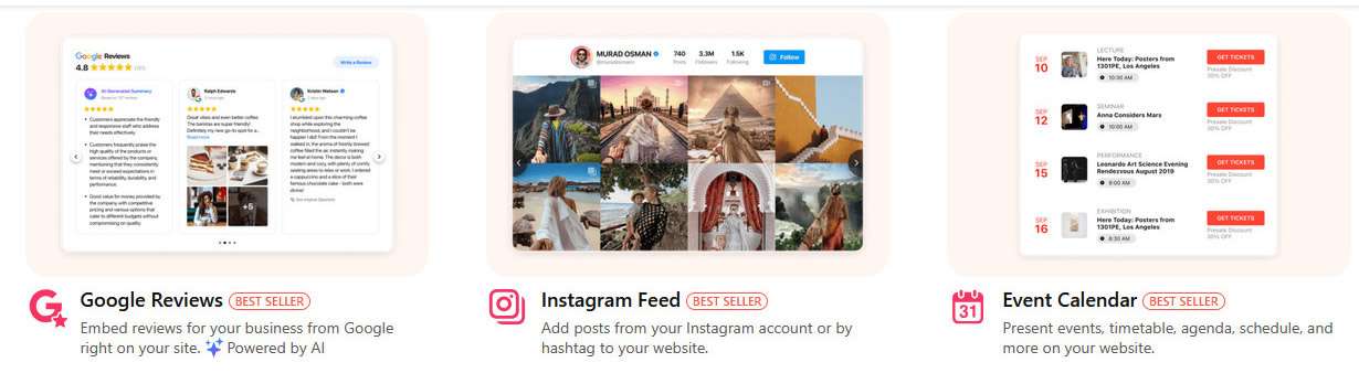Я протестировал некоторые из представленных сервисом elfsight.com виджетов и был приятно удивлен! Насколько просто и без лишних усилий по настройке (в отличие от настроек подобных плагинов) это можно сделать здесь. Минимум текста — только самое необходимое, правда на английском, но, если у вас установлено в браузере расширение-переводчик, то проблема исчезает за секунды.
